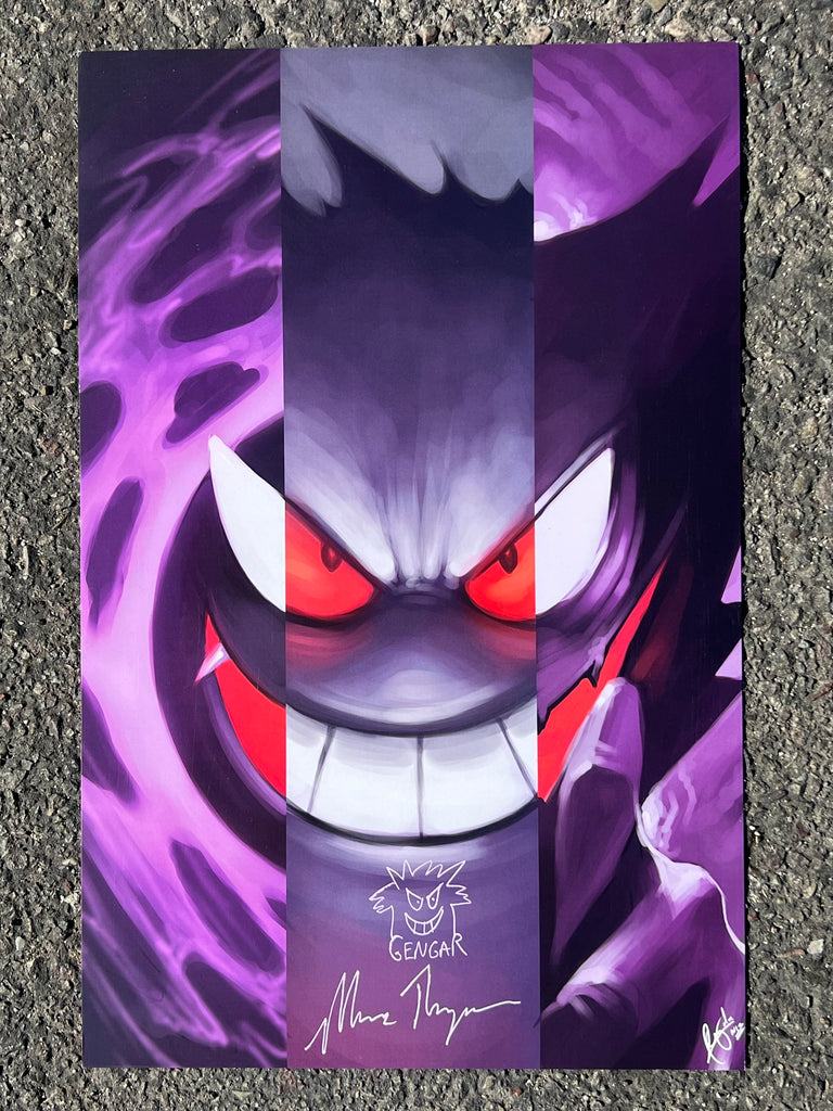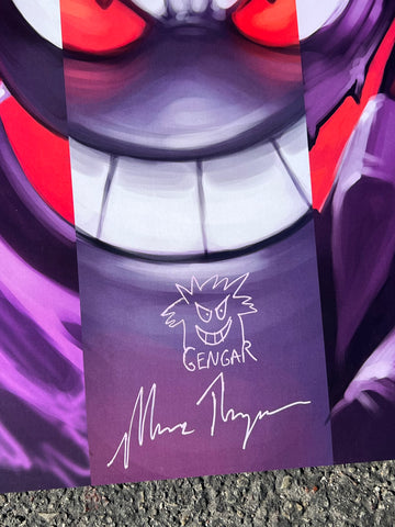 This Beautiful Print is Autographed in White Paint Sharpie by Marc Thompson, the voice actor of Gengar from Pokemon.