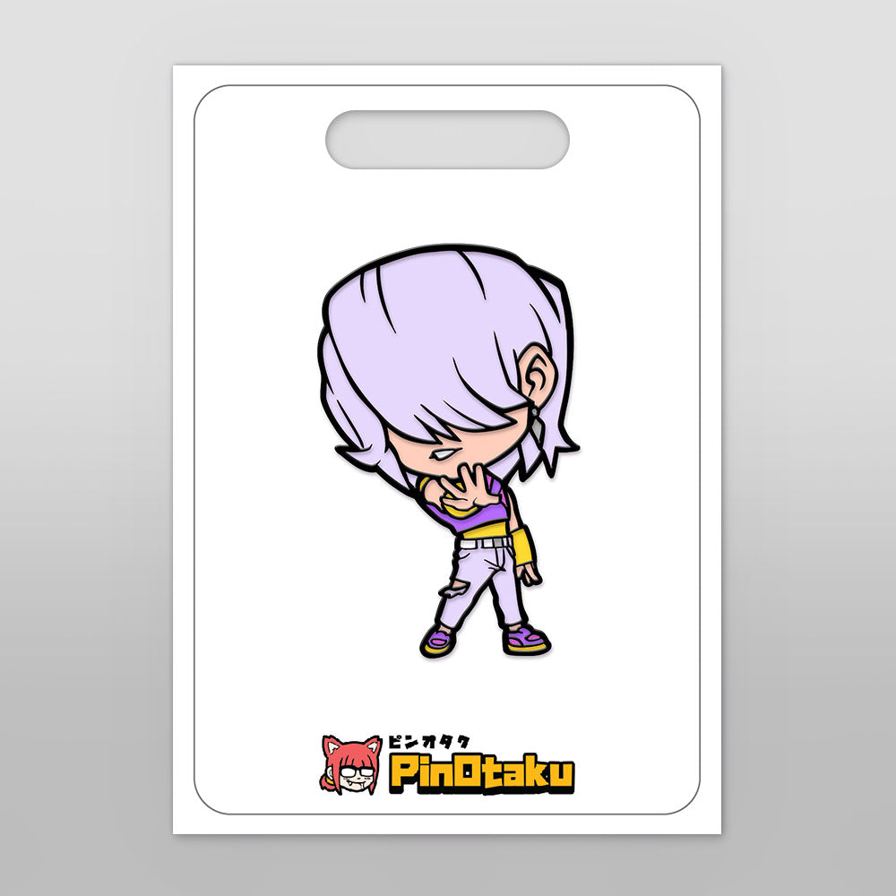 A high-quality enamel pin featuring original hand-drawn artwork.
