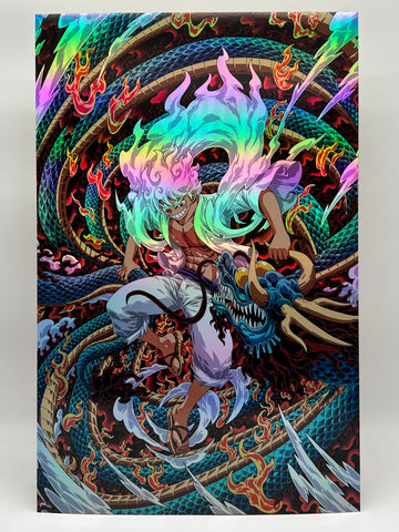 A special artistic vision, Jump Rope the Dragon is a brilliantly colorful canvas painting we created from our favorite moment of the epic battle between Monkey D. Luffy and Kaido.