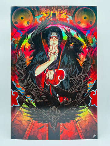 A special artistic vision, our piece titled "Stained Glass Ninja of Crows" is a brilliantly colorful painting we created for our new premium Wizyakuza Stained Glass Art Series.